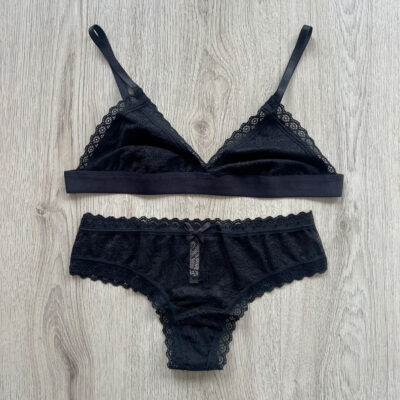 Hermosa tanga en color negro su encaje hacen de esta tanga un básico, su protector 100% algodón.