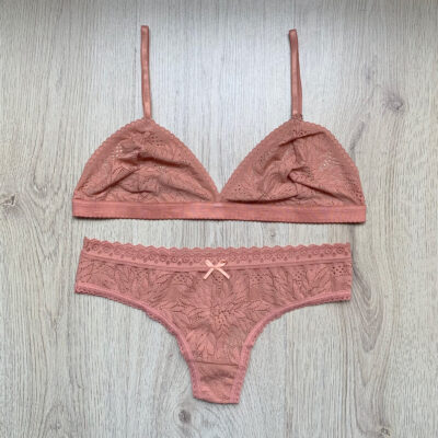 Conjunto sensual, cómodo y hermoso para el día a día, el top en triangulo tiene transparencias que lo hacen único. Con un su encaje color azul, las tiras del top las puedes ajustar a tu medida.