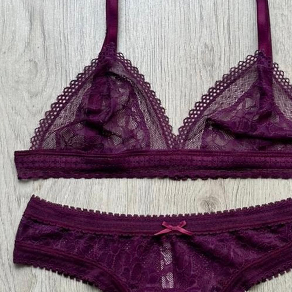 Hermoso conjunto con top y panty uva, hermosa transparencia que lo hacen cómodo y muy sexi, perfecto para cualquier ocasión.