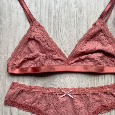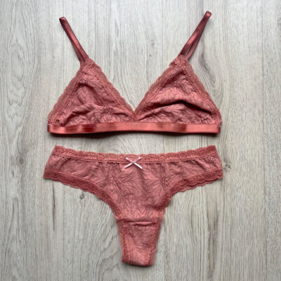 Hermoso conjunto en color vinotinto, con un sutil encaje y protector en el top que lo hacen único. panty muy cómodo y las tiras las puedes graduar a tu gusto.