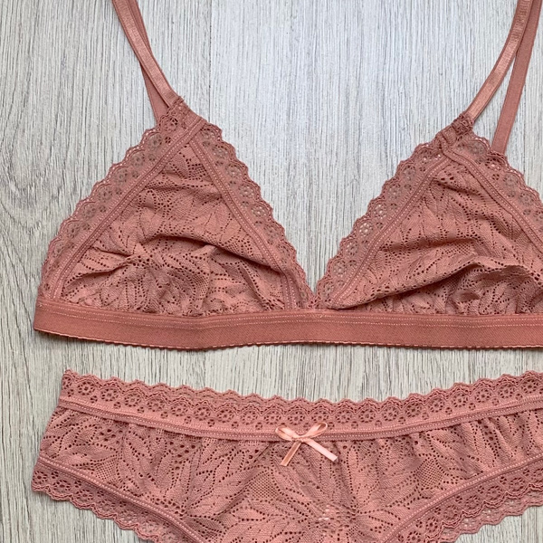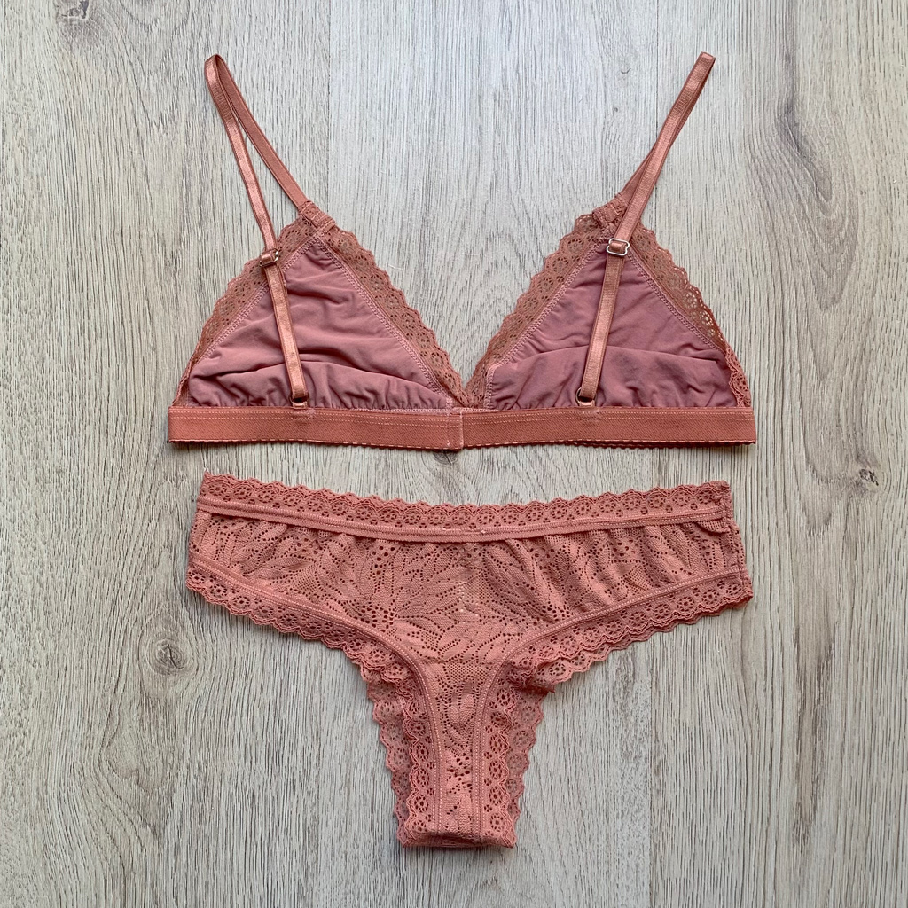 Hermoso conjunto con panty y top, encaje color nude, su top tiene protector para tu mayor comodidad.