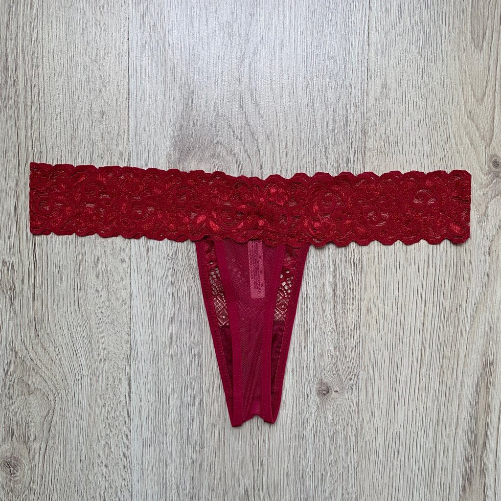 Panty en color vinotinto, hermoso encaje muy moderno que te harán lucir espectacular cada día que la uses y lo mejor es que se adapta a tu talla lo cual hace que no se marque.