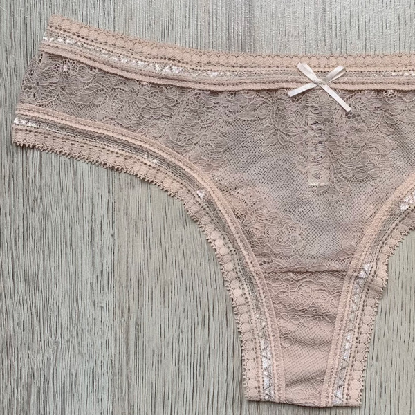 Tanga Moño con encaje muy sutil y sensual, su tela suave la hace única y perfecta al sentirte cómoda con su diseño moderno, color beige.